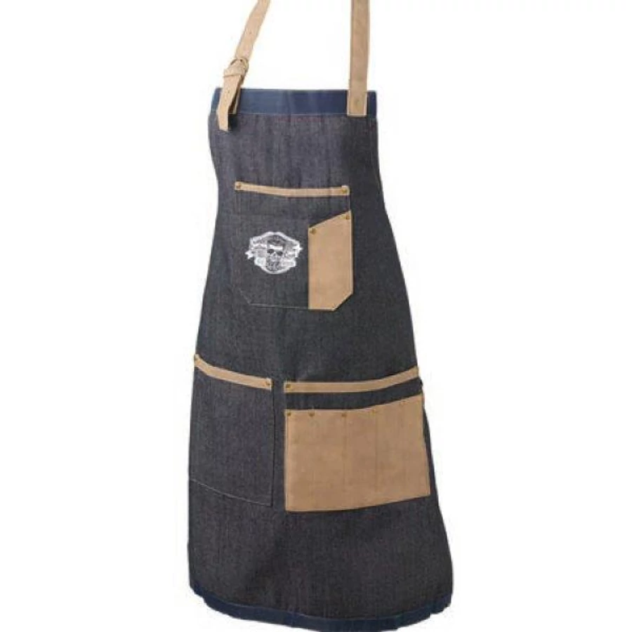Férfi fodrász kötény sok zsebbel. A Farmer anyag és műbőr kombinációjából készült kötények a Barber stílus jegyeiben készültek.