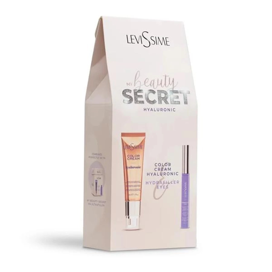 Hialuronsavas kezelés. Az arckrém Intenzíven hidratálja, és ideálisan színezi az arcbőrt, egységesíti a bőrtónusát, alacsony molekulatömegű hialuronsavval és niacinamiddal. A szemránckrém egy Öregedés gátló hidratáló kezelés a szemkörnyékre, amely láthatóan csökkenti a ráncokat. ,,Professzionális"szó jelentése: Kozmetikusok számára kifejlesztett, állatkísérlet mentes, szalon használatra is alkalmas, jelentősen magasabb hatóanyag tartalommal rendelkező kozmetikum, mint a lakosságnak készült arcápló. A csomag a lenti két kozmetikumot tartalmazza: „Tegye varázslatos pillanattá napi szépségápolási rutinját a My Beauty Secret Color Hyaluronic csomag segítségével” ------------ 4762 - Color cream hyaluronic – arckrém 50ml Az arckrém Intenzíven hidratálja, és ideálisan színezi az arcbőrt, egységesíti a bőrtónusát, alacsony molekulatömegű hialuronsavval és niacinamiddal. Véd a kiszáradás ellen, puhává és rugalmassá varázsolja a bőrt. Egységesíti a bőr tónusát. Hidratált, puha és rugalmas bőr. Egységes bőrtónus Vigye fel a Color Cream Hyaluronic krémet a tiszta, száraz bőrre, és oszlassa el az egész arc és nyak területén. -------------------- 4755 - Hydrafiller Eyes - szemránckrém 15ml Öregedésgátló hidratáló kezelés a szemkörnyékre, amely láthatóan csökkenti a ráncokat. Hialuronsavat, niacinamidot, ceramidokat és retinált tartalmaz, amelyek segítenek megtartani a nedvességet, hidratálják a bőrt, feltöltik a ráncokat, erősítik a bőr védőrétegét és javítják a szemkörnyék rugalmasságát és feszességét. • Hialuronsav. Erőteljes hidratáló, amely feltölti és csökkenti a ráncokat. • Niacinamid. Fokozza a bőr védő funkcióját, serkenti a kollagén és elasztin szintézisét. • Retina. Magas antioxidáns és sejtregeneráló képesség. . • Alkalmazásának eredményei: Látható eredmények 7 napon belül*: - Feltölti a ráncokat. - Mély hidratálás. Eredmények 60 napos* folyamatos használat után: - Több mint 20%-kal megnövekedett hidratáltság. - A ráncok teljes területének 16%-os csökkentése. * Az adatok a Nirvel Cosmetics S.L. műszaki központjában végzett vizsgálatból származnak. A legjobb eredményhez a szemránckrém használata: A tartályt függőleges helyzetben nyomja meg egyszer, hogy megkapja a megfelelő mennyiséget, és vigye fel a felső szemhéjra és a szemkontúrra. Ismételje meg ugyanezt a műveletet a másik szemmel. Ha szembe kerül, azonnal öblítse ki vízzel.