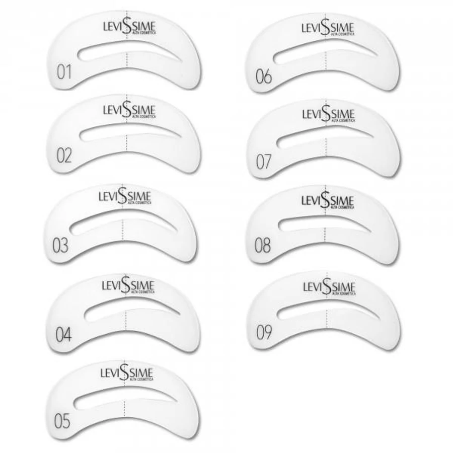 Szemöldök forma festő sablon szett, mely 9 db különböző szemöldök formát tartalmaz, így szinte minden igényt kielégít.