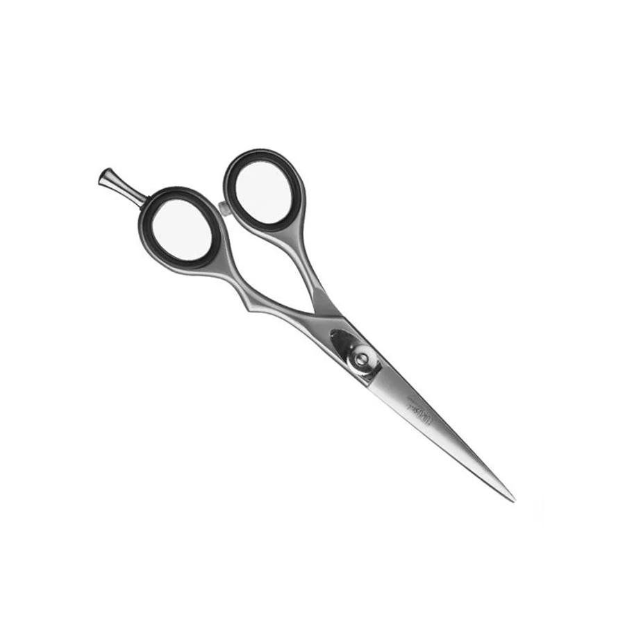 Hajvágó balkezes olló. Ergonómikus kialakítású fodrászkellék. A legjobb hatékonysághoz az acél hajvágó olló, mikro fogazású ( önélezős ) vágó éllel rendelkezik. A hajvágó olló, erős edzett acélból készült, éle, és tartóssága a márkától elvárhatóan alkalmassá teszi fodrász munkaeszközként való használatra. A hajvágó olló állítható csavaros szorító rendszerrel készül. A csavar teljes kicsavarásával az olló pengék szétválaszthatóak, ezért szükség esetén azok újra élezhetők.