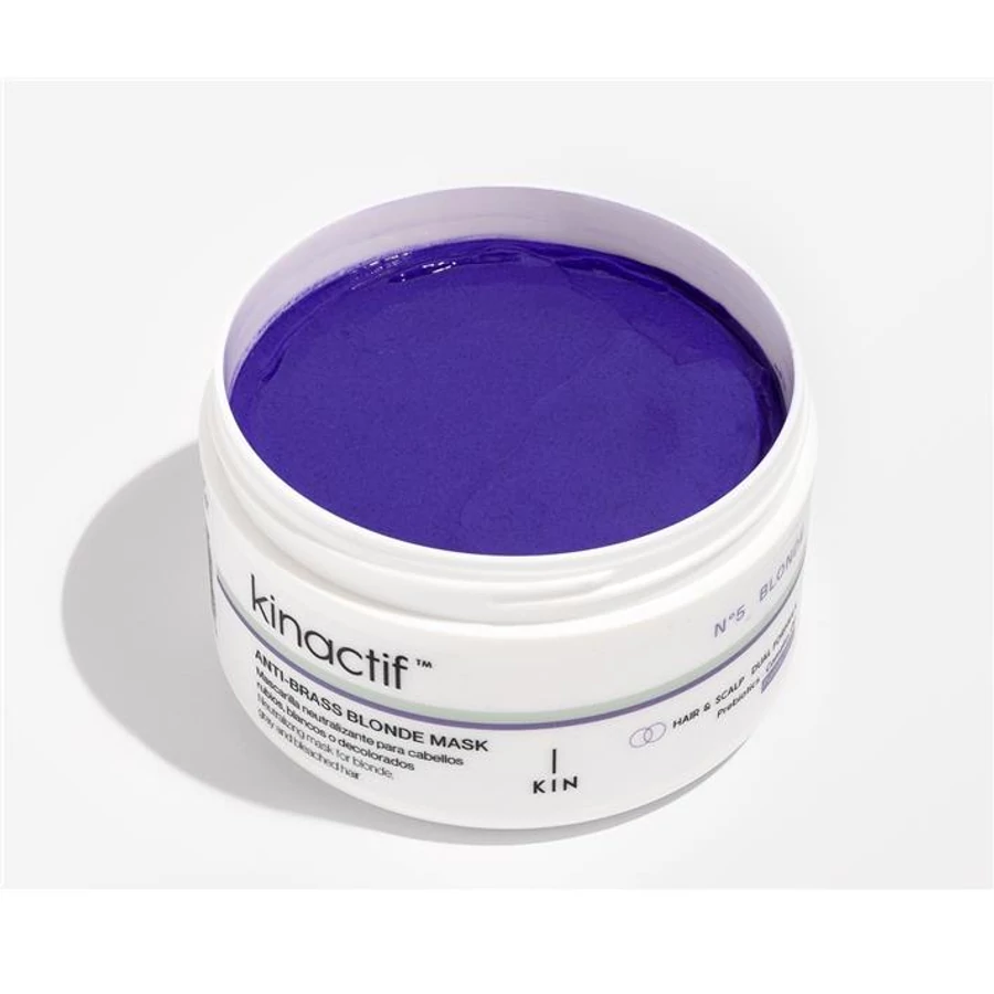 Vegán hajmaszk, mely intenzíven kezeli a szőke, ősz és szőkített hajat. A lila pigment tartalomnak köszönhetően semlegesíti a nem kívánt sárga árnyalatokat, helyreállítja a hajszálak lágyságát, így a haj újra puha és fényes lesz. Segít meggátolni a haj szálkásodását, lezárja a hajvégeket, nem nehezíti el a hajat. A hamvasítás, sárga árnyalat semlegesítés a Kinactif Blonde sampon és maszk együttes használatával fokozottan hatásos.