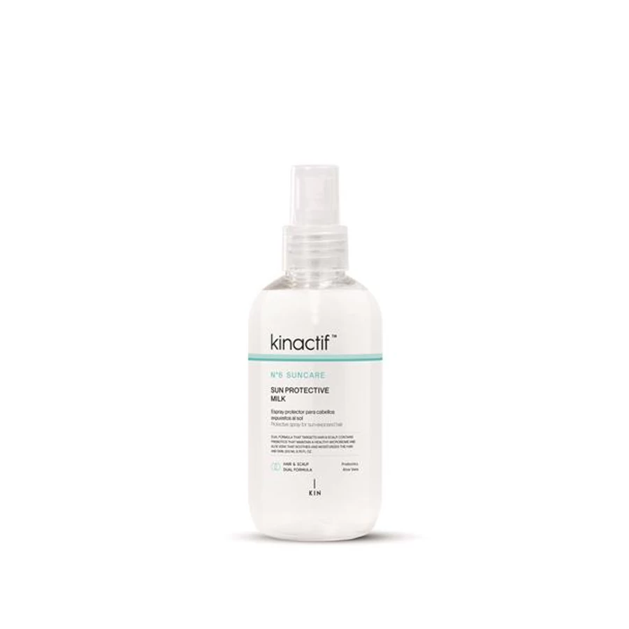 Prebiotikumokkal, Magas UV védelemmel rendelkezik. A nagyon erős, tűző napsugárzástól is megvédi a hajat, folyamatosan hidratálja, nedvességgel tölti fel a hajszálakat. Vízálló, nem mosódik ki azonnal a hajból, még egy hosszabb fürdőzés úszás erejéig is a hajon marad a Napsugárzástól védő prémium hajvédő, hajregeneráló hajápoló, hidratáló spray. Prebiotikumoknak köszönhetően nemcsak a hajat kezeli, hanem ezzel egyidejűleg a fejbőrt is, VEGÁN - professzionális prémium hajápoló! A vízálló! A Magas UV védelem, és a regeneráló hidratáló összetevők kiemelten alkalmassá teszik a nyári, strandolás, uszoda utáni hajápoláshoz is. Vegán, vízálló fényvédő hajspray, mely védi a napfénynek kitett haj minden típusát. Aktív összetevőinek köszönhetően, mint a prebiotikumok és aloe vera kivonat, megakadályozza a haj kiszáradását napozás közben, lágyítja és javítja a haj fésülhetőségét. Használata ajánlott napozás előtt és közben is, hogy a haj védelme folyamatos legyen. 200ml - Aktív összetevők: Aloe vera: Aminosavakban, vitaminokban és ásványi anyagokban gazdag természetes gyógynövény regeneráló, bőrpuhító és puhító tulajdonságokkal, mely nyugtató, frissítő és hidratáló hatást fejt ki a bőrre és a hajra. Prebiotikumok: Kettős összetételének köszönhetően nemcsak a hajat kezeli, hanem ezzel egyidejűleg a fejbőrt is, mivel prebiotikumokat tartalmaz, melyek segítenek fenntartani az egészséges mikrobiómát a fejbőrön. Az intenzív napfénynek kitett haj fénytelenné, vízhiányossá válik, és könnyen elveszíti színét, kifakul. A KINACTIF™ N°6 SUNCARE védi és helyreállítja a hajat a napsugárzástól, hatékonyan tisztít, eltávolítja a maradványokat, valamint frissítő és helyreállító hatást fejt ki a hajra és a bőrre. Az eredmény egy puhább, fényesebb és revitalizált haj. A Kinactif N°6 Suncare termékcsalád bizonyított eredménye: VISSZAÁLL A HAJ TERMÉSZETES RAGYOGÁSA ÉS PUHASÁGA NAPOZÁS UTÁN. Kinactif Suncare Sun Protective Milk – Intenzív fényvédő hajspray használata: Vigye fel száraz vagy nedves hajra, napozás előtt és alatt is, permetezze be és oszlassa el a fényvédő spray-t az egész hajon. Ne öblítse ki! Az új KINACTIF™ kezeléseket azért fejlesztették ki, hogy egy lépést tegyenek a fenntarthatóság felé, amely a KIN Cosmetics egyik alappillére. Őszinte, vegán formulái nagy százalékban tartalmaznak természetes eredetű összetevőket. Minden KINACTIF™ tartály 100%-ban újrahasznosítható. Ezenkívül a samponos flakonok biológiailag lebomlanak és 25%-kal kevesebb műanyagot* tartalmaznak. *Az új KINACTIF™ sampon flakon 24 g-ot nyom, ezzel szemben a régi KINACTIF™ samponos flakon 32 g volt.